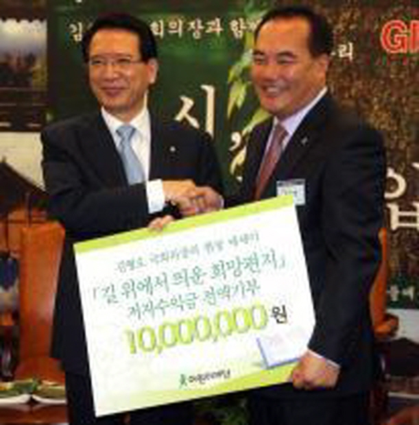 À̹ø Çà»ç´Â ±è ÀÇÀåÀÌ ¡®±æ À§¿¡¼ ¶ç¿î Èñ¸ÁÆíÁö¡¯¶ó´Â ¿ì¸® ¶¥ »ý»ý ޹æ±â¸¦ Ãâ°£ÇÏ¸é¼ ÀúÀÚ ¼öÀÍ±Ý Àü¾×À» °á½Ä¾Æµ¿ µ½´Âµ¥ »ç¿ëÇÏ°Ú´Ù°í ¾à¼ÓÇÑ ÀÚ¸®´Ù.