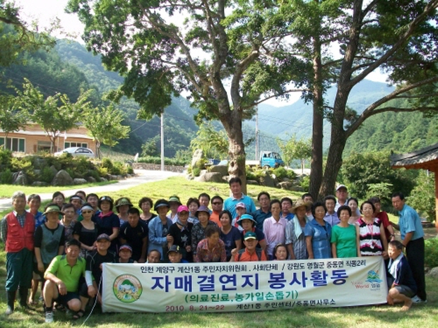 °è¾ç±¸ °è»ê1µ¿ Áֹμ¾ÅÍ(µ¿Àå À̱ÔÇÐ)´Â Áö³ 21Àϰú 22ÀÏ ¾çÀϰ£ ÀڸŰῬÁöÀÎ °¿øµµ ¿µ¿ù±º Áßµ¿¸é¿¡ ¹æ¹®ÇØ ³ó»ê¹° ¼öÈ® µî ºÀ»çȰµ¿À» ÆîÃÄ ¿ìÀÇÁõÁø°ú ±³·ù¸¦ ÁõÁøÇÏ´Â °è±â¸¦ ¸¶·ÃÇß´Ù.