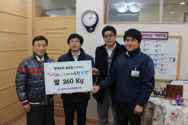 ·Ôµ¥½´ÆÛ ¿ù¼ºÁ¡(Áö±¸Àå:È«Á¾Ã¶)Àº 4ÀÏ ´Þ¼±¸³ëÀÎÁ¾ÇÕº¹Áö°ü(°üÀå:À±¿í)À» ã¾Æ ´Þ¼±¸Áö¿ªÀÇ Àú¼Òµæµ¶°Å¾î¸£½ÅµéÀÇ °Ü¿ïö °æÁ¦Àû¾ÈÁ¤À» Áö¿øÇϱâ À§ÇÑ ¡º2011~2012´Þ¼±¸µû½ÅÄ·ÆäÀΡ»¿¡ ½Ò 260KgÀ» ±âŹÇß´Ù.