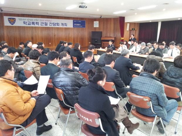À̳¯ °£´ãȸ¿¡¼ Çб³-½Ãû-°æÂû °ü°èÀÚ°¡ ¸ðµÎ Âü¼®ÇØ ÃÖ±Ù ¹ß»ýÇÑ ±¸¹ÌÁö¿ªÀÇ Çб³Æø·Â ½ÇŸ¦ ¹ßÇ¥ÇÏ°í ±¸Ã¼ÀûÀÎ ´ëÃ¥À» ³íÀÇÇÏ´Â ½Ã°£À» °¡Á³´Ù.