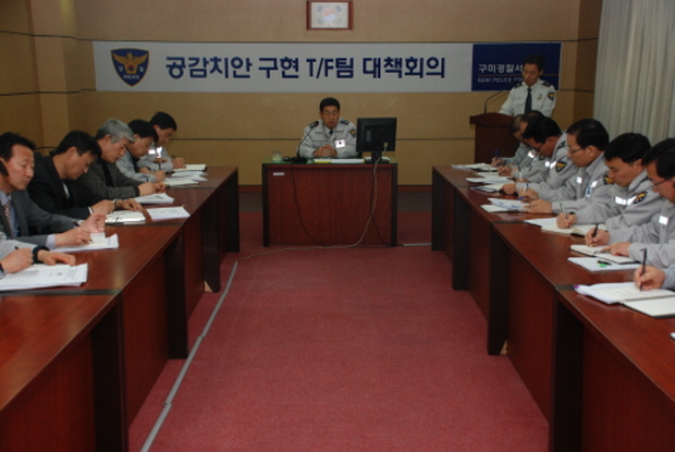 ±¸¹Ì°æÂû¼(¼Àå. ÀÌÇöÈñ)´Â 28ÀÏ °æÂû¼ 2Ãþ ¼ÛÁ¤¸¶·ç ȸÀǽǿ¡¼ °¢ °úÀå, °è(ÆÀ)Àå, ÆÄÃâ¼ÒÀå µî 54¸íÀÌ Âü¼®ÇÑ °¡¿îµ¥ Áֹΰø°¨Ä¡¾È ±¸ÇöÀ» À§ÇÑ T/FÆÀ ´ëåȸÀǸ¦ °³ÃÖÇÏ¿´´Ù.