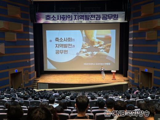 À̹ø ±³À°Àº ±¹¸³°æ±¹´ëÇб³ ¾Èº´À± °ø°øºÎÃÑÀåÀ» ÃÊÃ»ÇØ ¡®Ãà¼Ò»çȸÀÇ Áö¿ª¹ßÀü°ú °ø¹«¿ø¡¯À» ÁÖÁ¦·Î ÁøÇàµÆ´Ù. ±Þ°ÝÇÑ Àα¸ °¨¼Ò¿Í Àú¼ºÀå ±âÁ¶ ¼Ó¿¡¼ Áö¿ª»çȸ°¡ Á÷¸éÇÑ Çö½ÇÀ» Áø´ÜÇϰí, Áö¿ªÀÇ Áö¼Ó°¡´ÉÇÑ ¹ßÀü Àü·«°ú °øÁ÷ÀÚÀÇ ¿ªÇÒÀ» °í¹ÎÇÏ´Â ½Ã°£À¸·Î ¸¶·ÃµÆ´Ù.