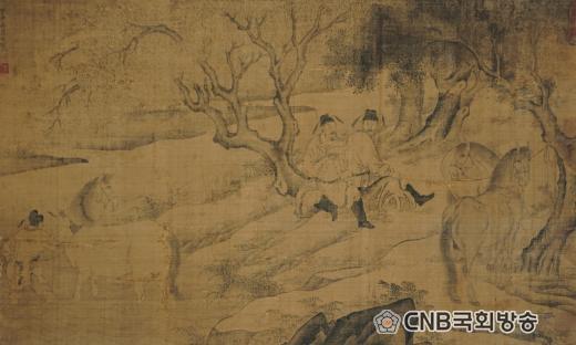 ¡®¼¼¸¶µµ¡¯´Â 1704³â ÀÛÀ¸·Î ºñ´ÜÀ§¿¡ ¼ö¹¬À¸·Î ±×·ÁÁø °¡·Î 75.5cm¡¿¼¼·Î 46cmÀÇ Å©±âÀÇ Á·ÀÚ ÇüÅÂ, ¸»ÀÌ ¹°°¡¿¡¼ ¼¼Á¤µÇ´Â Àå¸éÀ» °£°áÇϸ鼵µ ÈûÀÌ ÀÖ´Â º×Áú·Î ±×·Á³½ ÀÛǰÀÌ´Ù. Á¶¼±Èı⠼ö¹¬ÈÀÇ ¼¼¹Ð¼º°ú ÀÚ¿¬ÁÖÀÇ °æÇâÀ» Àß º¸¿©ÁØ´Ù. ƯÈ÷ ¸»ÀÇ ±ÙÀ°°ú ÅÐÀÇ Á¤±³ÇÑ Ç¥Çö, ¿©¹é°ú ³ó¹¬ÀÇ ´ëºñ¸¦ ÅëÇØ ȸé Àüü¿¡ ±äÀå°¨°ú È£ÈíÀÌ °øÁ¸ÇÑ´Ù´Â Æò°¡¸¦ ¹Þ´Â ÀÛǰÀ¸·Î ´ç½Ã ½ÇÇÐÀû »ç½ÇÁÖÀÇ ÈdzÀÇ Áø¼ö¸¦ º¸¿©ÁÖ´Â ÀÛǰÀÌ´Ù.
