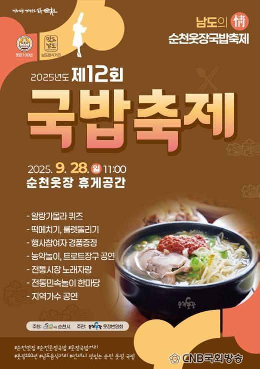 ±¹¹ä ÇÑ ±×¸©¿¡ ´ã±ä ¼øÃµÀÇ Á¤, Á¦12ȸ ¿ôÀå ±¹¹äÃàÁ¦ °³ÃÖ! ¿À´Â 28ÀÏ, ¼øÃµ ¿ôÀå¿¡¼ ¸¸³ª´Â ÁøÂ¥ ±¹¹äÀÇ ¸À - CNB ±¹È¸¹æ¼Û ¼øÃµ½ÃÃëÀ纻ºÎ ±è±¤¿øº»ºÎÀå cnbnews3000@naver.com |