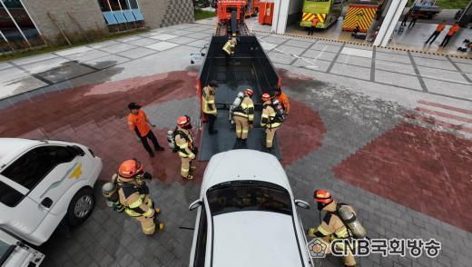 °æ³²119Ư¼ö´ëÀÀ´Ü, Àü±âÂ÷ ÈÀç ´ëÀÀ ¿ª·®°È¸¦ À§ÇÑ ±Ç¿ªº° ÇÕµ¿ÈÆ·Ã ½Ç½Ã - °æ³²119Ư¼ö´ëÀÀ´Ü ÁÖ°ü, µµ³» 18°³ ¼Ò¹æ¼ ±¸Á¶´ë¿ø°ú Àü±âÂ÷ ÈÀç ÇÕµ¿ÈÆ·Ã ½Ç½Ã