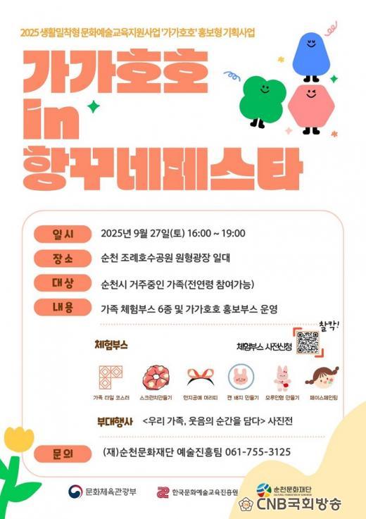 (Àç)¼øÃµ¹®ÈÀç´Ü, °¡Á·°ú ÇÔ²² Áñ±â´Â ¹®È¿¹¼ú³îÀÌÅÍ ¡®°¡°¡È£È£ in Ç×²Ù³×Æä½ºÅ¸¡¯ ¿î¿µ CNB ±¹È¸¹æ¼Û ¼øÃµ½ÃÃëÀ纻ºÎ ±è±¤¿øº»ºÎÀå cnbnews3000@naver.com |