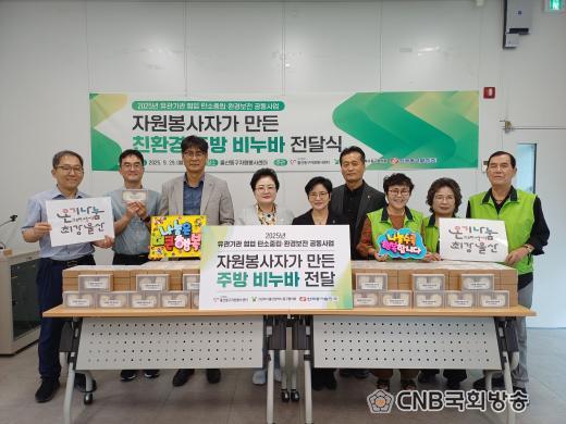 ¡®Ä£È¯°æ ÁÖ¹æ ºñ´©¹Ù ¸¸µé±â ±³½Ç¡¯¿¡´Â ¿ï»êµ¿±¸ÀÚ¿øºÀ»ç¼¾ÅÍ(ÀÌ»çÀå À̼øÀÚ), ±×¸°¸®´õ¿ï»êµ¿±¸ÇùÀÇȸ(ȸÀå ±è±æÁÖ)¿Í ÇÔ²² ÀÚ¿øºÀ»çÀÚ 150¿© ¸íÀÌ Âü¿©ÇØ Á÷Á¢ ¡®Ä£È¯°æ ÁÖ¹æ ºñ´©¹Ù¡¯¸¦ Á¦ÀÛÇϸç, ģȯ°æ »ýȰ½Çõ°ú ÀÚ¿ø ÀçȰ¿ëÀÇ Á߿伺À» ¹è¿ì´Â ½Ã°£À» °¡Á³´Ù.