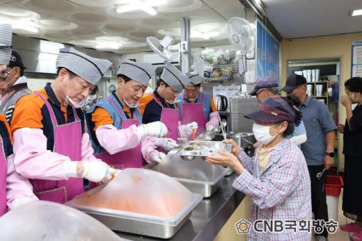 Æ÷Ç×Á¦Ã¶¼Ò´Â À̳¯ ¿ÀÀü ¼Ûµµµ¿°ú ÇØµµµ¿ÀÇ ¹«·á ±Þ½Ä¼Ò¿¡¼ Ãß¼®¸ÂÀÌ ¹è½Ä ºÀ»ç¸¦ ½Ç½ÃÇß´Ù. Æ÷Ç×Á¦Ã¶¼Ò ¼ÒÀå´ÜÀ» ºñ·ÔÇÑ Á¤ºñ»ç¾÷ȸ»ç ¹× ÆÄÆ®³Ê»ç ´ëÇ¥ µîÀÌ Âü¼®ÇØ ¾î¸£½Åµé¿¡°Ô µû¶æÇÑ ½Ä»ç¸¦ Á¦°øÇß´Ù.