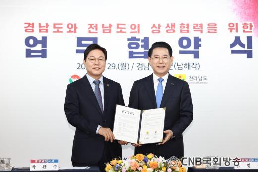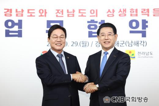 °æ»ó³²µµ(µµÁö»ç ¹Ú¿Ï¼ö)¿Í Àü¶ó³²µµ(µµÁö»ç ±è¿µ·Ï)´Â 29ÀÏ ³²Çرº ³²Çذ¢¿¡¼ ¡®°æ³²¡¤Àü³² »ó»ýÇù·Â ¾÷¹«Çù¾à¡¯À» ü°áÇϰí, ¾ç µµ °£ ½ÇÁúÀûÀÎ °øµ¿ ¹ßÀüÀ» ÃßÁøÇϱâ·Î Çß´Ù.