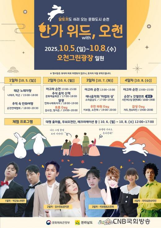 7ÀÏ¿¡´Â ¼Ò¸®°ñ³²µµÀÇ ¡®¾Ö´ÏÄܼƮ-¸¶¹ýÀÇ ¼º¡¯, À̺¸¶÷ ¼ÒÂùÈÖÀÇ ÆÄ¿öÇ®ÇÑ ¿©¼º º¸ÄÃÀÇ ¹«´ë°¡ À̾îÁø´Ù. 8ÀÏ¿¡´Â 6¿ùºÎÅÍ ÁøÇàÇØ¿Â ½Ã¹Î ¹ö½ºÅ· °æ¿¬´ëȸ ¼øÃµ¡¯s °«ÅÅ·±Æ® °á¼±ÀÌ ÀÌ·ïÁö¸ç, ÀÚµÎ, ¿ø½´Å¸ÀÎÀÇ °ø¿¬À¸·Î ´ë¹Ì¸¦ Àå½ÄÇÑ´Ù. ƯÈ÷, ¼øÃµ Áö¿ª¿¹¼úÀεéÀÌ Âü¿©ÇÏ´Â ¡®¾Æ°í¶ó ¼øÃµ¡¯ ¹«´ëµµ 10¿ù 6ÀϺÎÅÍ 8ÀϱîÁö ¸ÅÀÏ ¿ÀÈÄ 2½Ã¿¡ ¿·Á, Áö¿ª ¹®È¿¹¼úÀÇ ´Ù¾ç¼º°ú ¿¡³ÊÁö¸¦ ÇöÀå¿¡¼ Á÷Á¢ ´À³¥ ¼ö ÀÖ´Ù.