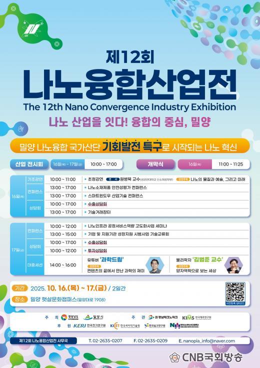 Á¦12ȸ ³ª³ëÀ¶ÇÕ»ê¾÷Àü ¡®³ª³ëÇÇ¾Æ 2025¡¯ ¹Ð¾ç¼ °³ÃÖ - 16ÀÏ~17ÀÏ ÀÌÆ²°£, ¹Ð¾çÇ޻칮ÈÄ·ÆÛ½º¿¡¼ °³ÃÖ - »ê¾÷Àü½Ãȸ 36°³ ±â°ü¡¤±â¾÷ 50°³ ºÎ½º Âü¿© - ¼öÃâ»ó´ãȸ, ±â¼ú±³·ùȸ, ³ª³ëÀÎ ¸¸³²ÀÇ Àå µî ´Ùä·Î¿î ÇÁ·Î±×·¥ CNB±¹È¸¹æ¼Û °æ³²/¿ï»ê ÃѰýº»ºÎÀå ¹Úº´Âù chan8789@naver.com |