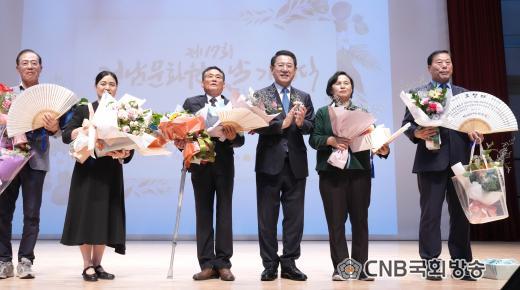 Çà»ç¿¡¼± Áö¿ª ¹®È¿¹¼úÁøÈï¿¡ ±â¿©ÇÑ ¼øÃµ¹®È¿ø°ú Áö±ØÇÑ È¿¼ºÀ¸·Î Áö¿ª»çȸ¿¡ ¸ð¹üÀÌ µÈ ÀåÇâ¼± ±¸·Ê¹®È¿ø ȸ¿ø µî 4¸í¿¡°Ô µµÁö»ç ǥâµµ ¼ö¿©µÆ´Ù.
