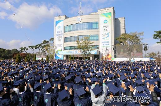 ÇÑÆí, À̳¯ ÁøÇàµÈ ¼ö·á½ÄÀº ¡®»ç¶û°ú Ãູ, ¼¼°è¸¦ ºñÃß´Â ºû¡¯À» ÁÖÁ¦·Î ÁøÇàµÆ´Ù. ½ÅõÁö ûÁÖ±³È¸ ³»¿ÜºÎ¿¡ 2¸¸¿© ¼ö·á»ýµéÀÌ °¡µæ ÀÚ¸®¸¦ ä¿ü°í, °ø°£ÀÌ Çù¼ÒÇØ ³ª¸ÓÁö ¼ö·á»ýµéÀº ±¹³»¿Ü ½ÅõÁö¿¹¼ö±³È¸¿¡ Èð¾îÁ® ¿Â¶óÀÎÀ¸·Î µ¿ÂüÇϸç ÃàÇÏÀÇ ¿±â¸¦ ´õÇß´Ù.