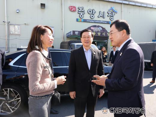 Á¸ ¸® ÇàÁ¤¼ö¹Ý ÀÏÇàÀº ½ÃÀå °÷°÷À» µÑ·¯º¸¸ç Ȱ±âÂù »ó°Å·¡ ÇöÀåÀ» °üÂûÇÏ°í »óÀεé°ú Àλ縦 ³ª´©¸ç, ÀüÅë½ÃÀå Çö´ëÈ »ç¾÷°ú Áö¿ª°ü±¤ ¿¬°è »ç·Ê¿¡ ´ëÇÑ ¼³¸íÀ» µé¾ú´Ù.