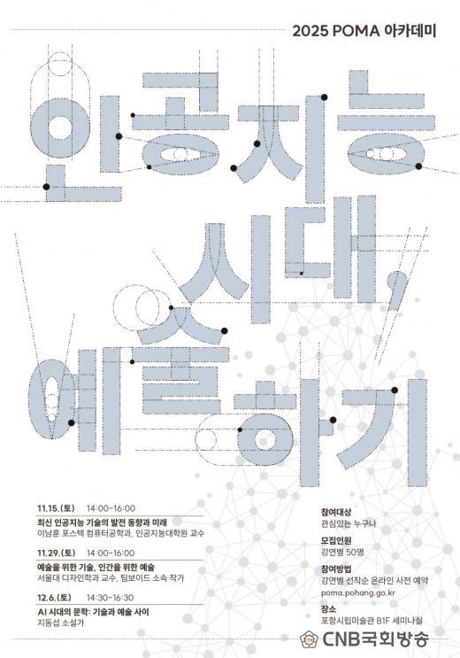 ÇÑÆí, ¡®2025 POMA ¾ÆÄ«µ¥¹Ì¡¯´Â 10ÀϺÎÅÍ Æ÷Ç׽ø³¹Ì¼ú°ü ȨÆäÀÌÁö(www.poma.pohang.go.kr)¿¡¼ ¿Â¶óÀÎÀ¸·Î »çÀü Á¢¼öÇÒ ¼ö ÀÖÀ¸¸ç, °Áº° ¼±Âø¼ø 50¸íÀ» ¸ðÁýÇÑ´Ù.