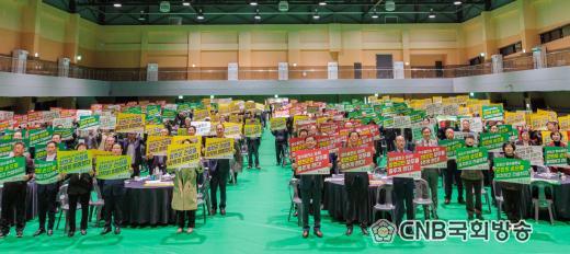 À̳¯ Çà»ç¿¡´Â 17°³ À¾¡¤¸é ȸ¿ø ¹× »çȸ´ÜüÀå µî ¾à 400¿© ¸íÀÌ Âü¼®ÇÏ¿© ÇѸ¶À½ ÇѶæÀ¸·Î ¡°¿Àµµ»ê ¾ç¼ö¹ßÀü¼Ò ¹Ýµå½Ã À¯Ä¡ÇÏÀÚ¡±¶ó´Â ±¸È£¸¦ ¿ÜÄ¡¸ç À¯Ä¡ ¿°¿øÀ» Áý°áÇß´Ù.