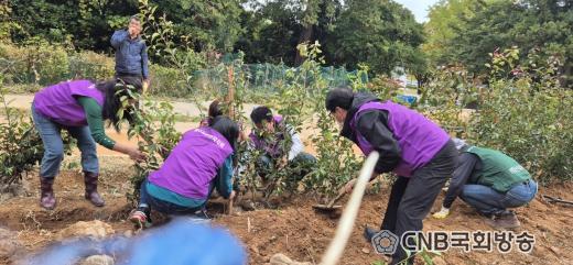 ÁÖ¹ÎÀÚġȸ´Â ¸Ç¹ß±æ ³»ºÎÀÇ ÀâÃʰ¡ ¿ì°ÅÁ® Ȱ¿ëµµ°¡ ³·¾Ò´ø À¯ÈÞ °ø°£À» Á¤ºñÇϰí, ±× ÀÚ¸®¿¡ ²É¾ç±Íºñ, À¯Ã¤²É, È«°¡½Ã³ª¹« µîÀ» ½ÄÀçÇß´Ù. À̸¦ ÅëÇØ ±âÁ¸ ȲÅê±æ°ú Á¶È¸¦ ÀÌ·ç´Â ´õ¿í dz¼ºÇÑ »êÃ¥·Î ȯ°æÀÌ Á¶¼ºµÇ¸ç Áֹε鿡°Ô »õ·Î¿î Èú¸µ °ø°£À» Á¦°øÇϰí ÀÖ´Ù.