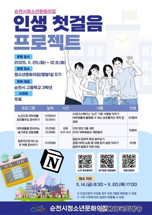 | ¼øÃµ½Ã, ¡®Àλý ù°ÉÀ½ ÇÁ·ÎÁ§Æ®¡¯·Î °í3 Àüȯ±â û¼Ò³â Áö¿ø - ½Ç¿ë+Àç¹Ì+¼ºÀå, Àüȯ±â û¼Ò³âÀ» À§ÇÑ ÁøÂ¥ Àλý Áغñ Ŭ·¡½º ¿î¿µ - CNB ±¹È¸¹æ¼Û ¼øÃµ½ÃÃëÀ纻ºÎ ±è±¤¿øº»ºÎÀå cnbnews3000@naver.com |