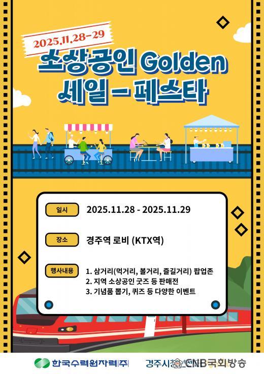 | ±Ý°üÀÇ ºûÀÌ È帣´Â °æÁÖ, °ñµç ¼¼ÀÏ-Æä½ºÅ¸·Î ¼Ò»ó°øÀο¡ Ȳ±Ýºû ¿Âdz ºÒ¾î - 28Àϰú 29ÀÏ, Áö¿ª ¼Ò»ó°øÀÎ °æÁÖ¿ª¿¡¼ ÆË¾÷½ºÅä¾î ÃàÁ¦ CNB±¹È¸¹æ¼Û Àü±¹ÃѰýº»ºÎÀå ±è°Ç¿ì oprus21@naver.com |
