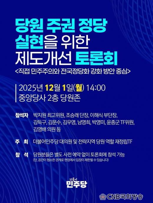 | ´õºÒ¾î¹ÎÁÖ´ç, ´ç¿øÁÖ±ÇÁ¤´ç ½ÇÇö À§ÇÑ Á¦µµ°³¼± Åä·Ðȸ °³ÃÖ - ´ëÀÇ¿ø ¿ªÇÒ ÀçÁ¤¸³ TF ¡°´ç¿ø ¸ñ¼Ò¸® Á¦µµ¿¡ ¹Ý¿µÇϰڴ١± CNB±¹È¸¹æ¼Û È£³²º»ºÎÀå ¿À°æÅ okt0797@naver.com |