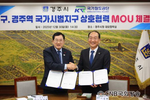 °æÁֽô Áö³´Þ 30ÀÏ ½Ãû ´ë¿ÜÇù·Â½Ç¿¡¼ ÁÖ³«¿µ °æÁÖ½ÃÀå°ú À̼ºÇØ ±¹°¡Ã¶µµ°ø´Ü ÀÌ»çÀåÀÌ Âü¼®ÇÑ °¡¿îµ¥ ¡®±¸(ÏÁ) °æÁÖ¿ª µµ½ÃÀç»ý Çõ½ÅÁö±¸ °ø¸ð ÃßÁøÀ» À§ÇÑ ¾÷¹«Çù¾à(MOU)¡¯À» ü°áÇß´Ù°í 1ÀÏ ¹àÇû´Ù.