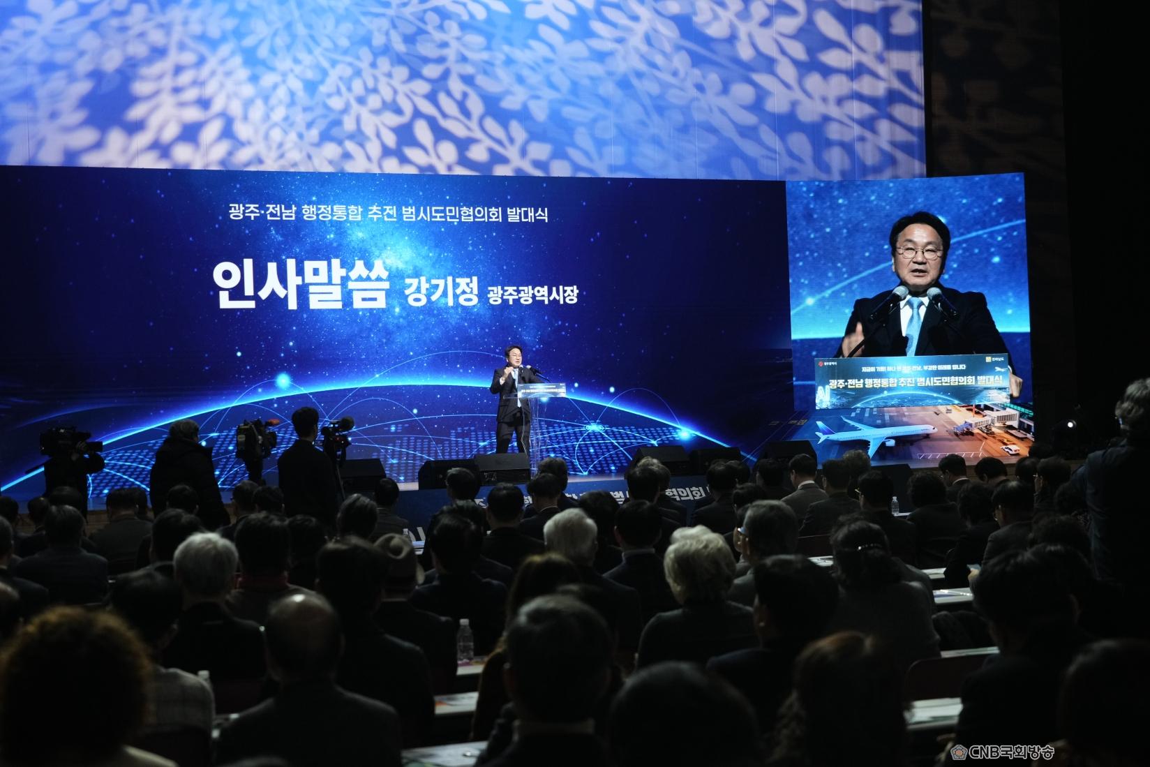 ±¤ÁÖ±¤¿ª½Ã(½ÃÀå °±âÁ¤)¿Í Àü¶ó³²µµ(Áö»ç ±è¿µ·Ï)´Â 16ÀÏ ¿ÀÈÄ 3½Ã ±è´ëÁßÄÁº¥¼Ç¼¾ÅÍ¿¡¼ ¡®±¤ÁÖ‧Àü³² ÇàÁ¤ÅëÇÕ ÃßÁø ¹ü½Ãµµ¹Î ÇùÀÇȸ¡¯ ¹ß´ë½ÄÀ» ¿°í, ´ëÇѹα¹ ÃÖÃÊÀÇ ÅëÇÕ ±¤¿ªÁö¹æÁ¤ºÎ ź»ýÀ» À§ÇÑ ½Ãµµ¹Î ¿ª·® °áÁý¿¡ ³ª¼¹´Ù.