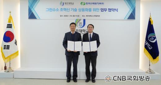 Àü´ë¿í ÇѼö¿ø »çÀå Á÷¹«´ëÇàÀº ¡°±×¸°¼ö¼Ò´Â ź¼ÒÁ߸³ ½ÇÇöÀ» À§ÇÑ ÇÙ½É ¼ö´ÜÀÌÀÚ ¹Ì·¡ ¼ºÀå »ê¾÷À¸·Î, Á¦ÁÖ´Â ¿ì¸®³ª¶ó ¿©°Ç¿¡ ¸Â´Â ±×¸°¼ö¼Ò »ý»êÀÇ ÃÖÀûÁö¡±¶ó¸ç, ¡°À̹ø Á¦ÁÖ´ëÇб³¿ÍÀÇ Çù·ÂÀ» ÅëÇØ ±×¸°¼ö¼Ò °æÀï·ÂÀ» È®º¸ÇÏ´Â µ¥¿¡ Èû¾²°Ú´Ù¡±¶ó°í ¹àÇû´Ù.