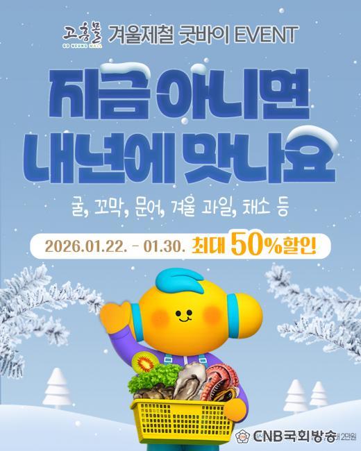 | °íÈﱺ, °íÈï¸ô ¡®Áö±Ý ¾Æ´Ï¸é ³»³â¿¡ ¸À³ª¿ä¡¯ ±âȹÀü ¿î¿µ -1¿ù 22ÀÏ~30ÀÏ, °Ü¿ï Á¦Ã¶ ³ó¼ö»ê¹° ÃÖ´ë 50% ÇÒÀÎ CNB±¹È¸¹æ¼Û È£³²º»ºÎÀå ¿À°æÅ okt0797@naver.com |