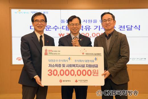 ´ëâ¿î¼ö¿Í ´ëâ¼®À¯´Â À̳¯ ¼º±Ý 3000¸¸¿øÀ» ±âŹÇß´Ù. ÀÌ ¼º±ÝÀº ¡®Èñ¸Á2026 ³ª´®Ä·ÆäÀΡ¯À» ÅëÇØ ±¤ÁÖÁö¿ª µ¹º½ÀÌ¿ôµéÀ» À§ÇØ »ç¿ëµÈ´Ù.