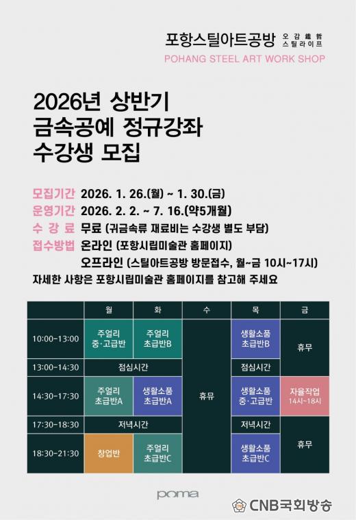 | Æ÷Ç×½Ã, ½ºÆ¿¾ÆÆ®°ø¹æ 19±â ±Ý¼Ó°ø¿¹ Á¤±Ô°Á ¼ö°»ý ¸ðÁý - »ýȰ¼Òǰ ±Ý¼Ó°ø¿¹¡¤ÁÖ¾ó¸® ±Ý¼Ó°ø¿¹ ÇÁ·Î±×·¥ ±¸¼º, ÃÊ±Þ¹Ý °Á ´ëÆø È®´ë - Ãë¹Ì Ȱµ¿À» ³Ñ¾î â¾÷±îÁö ÁغñÇÒ ¼ö ÀÖµµ·Ï ü°èÀûÀÎ Ä¿¸®Å§·³À» Á¦°ø CNB±¹È¸¹æ¼Û Àü±¹ÃѰýº»ºÎÀå ±è°Ç¿ì oprus21@naver.com |