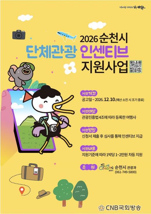 | ¼øÃµ °¡¸é 2¸¸¿ø Áö¿ø¡¦2026³â ´Üü°ü±¤ Àμ¾Æ¼ºê È®´ë - ¿À°¨¸¸Á· Ä¡À¯°ü±¤À¸·Î Â÷º°È³ª¼ - CNB ±¹È¸¹æ¼Û ¼øÃµ½ÃÃëÀ纻ºÎ ±è±¤¿øº»ºÎÀå cnbnews3000@naver.com |