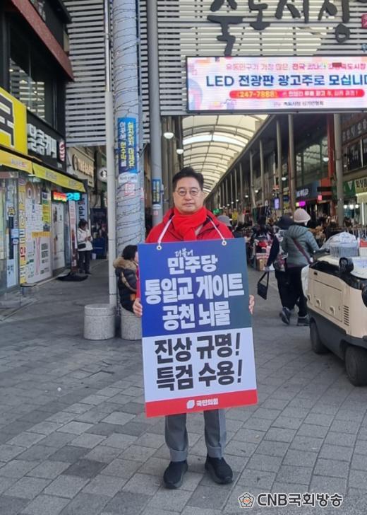±×´Â À̳¯ Æ÷Ç× Á×µµ½ÃÀå ÀÔ±¸¿¡¼ ÁøÇàµÇ°í ÀÖ´Â ¡®´õºÒ¾î¹ÎÁÖ´ç ÅëÀϱ³ °ÔÀÌÆ®¡¤°øÃµ³ú¹° Ư°Ë ¼ö¿ë Ã˱¸¸¦ À§ÇÑ Ãµ¸¸ ¼¸í¿îµ¿¡¯¿¡ µ¿ÂüÇÑ ÈÄ °°Àº Àå¼Ò¿¡¼ ´õºÒ¾î¹ÎÁÖ´çÀÇ Æ¯°Ë ¼ö¿ëÀ» Ã˱¸ÇÏ´Â 1ÀÎ ÇÇÄϽÃÀ§¿¡ ³ª¼±âµµ Çß´Ù.