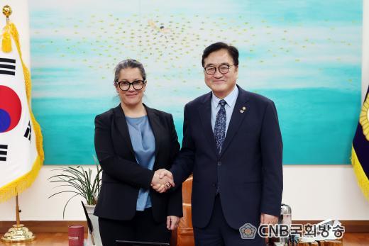 ¿ì¿ø½Ä ±¹È¸ÀÇÀåÀº 26ÀÏ ¿ÀÈÄ ÀÇÀåÁý¹«½Ç¿¡¼ À×°Å ¾Ö½Ì ¼¼À̺ê´õÄ¥µå·± ÀÎÅͳ»¼Å³Î CEO¿Í ¸é´ãÀ» °¡Á³´Ù.