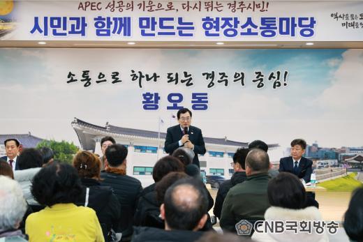 ÁÖ³«¿µ °æÁÖ½ÃÀåÀº À̳¯ µÎ Çà»ç¿¡¼ Àλ縻À» Á÷Á¢ ÀüÇϰí, ÁֹεéÀÌ Á¦±âÇÑ °ÇÀÇ»çÇ×À» Á÷Á¢ ûÃëÇÏ¸ç ¡°ÇöÀå¿¡¼ ³ª¿Â ÀǰßÀ» ½ÃÁ¤¿¡ Àû±Ø ¹Ý¿µÇÒ ¼ö ÀÖµµ·Ï °ü·Ã ºÎ¼¿Í ÇÔ²² °ËÅäÇϰڴ١±°í °Á¶Çß´Ù.