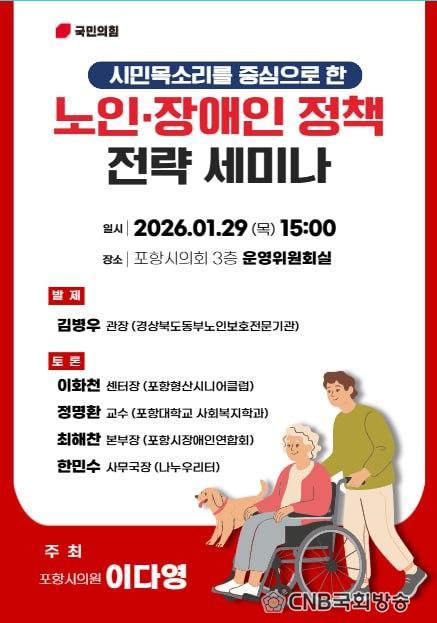 | ÀÌ´Ù¿µ Æ÷Ç×½ÃÀÇ¿ø, ¡®³ëÀΡ¤Àå¾ÖÀÎ Á¤Ã¥ Àü·« ¼¼¹Ì³ª¡¯ °³ÃÖ - ½Ã¹Î ¸ñ¼Ò¸® Áß½ÉÀÇ ³ëÀΡ¤Àå¾ÖÀÎ Á¤Ã¥, ÇöÀå¿¡¼ ÇØ¹ýÀ» ã´Ù CNB±¹È¸¹æ¼Û Àü±¹ÃѰýº»ºÎÀå ±è°Ç¿ì oprus21@naver.com |