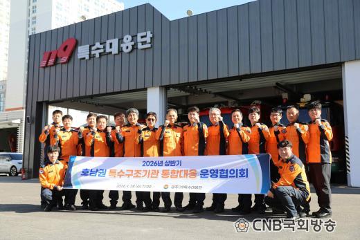 ÇÑÆí Æ¯¼ö±¸Á¶±â°ü ÅëÇÕ´ëÀÀ ¿î¿µÇùÀÇȸ´Â Áö³ 2020³â ½ÃÇàµÈ ¡®Àü±¹ 119Ư¼ö´ëÀÀ´Ü µî ÅëÇÕ´ëÀÀ¿¡ °üÇÑ ±ÔÁ¤¡¯¿¡ µû¶ó ¿¸®´Â ȸÀÇ´Ù. ±×µ¿¾È Áß¾Ó119±¸Á¶º»ºÎ°¡ ÁÖ°üÇØ ¿ÔÀ¸¸ç, À̹ø ÇùÀÇȸ´Â ±¤Áֽà 119Ư¼ö´ëÀÀ´ÜÀÌ Ã³À½À¸·Î ÁÖ°üÇß´Ù.