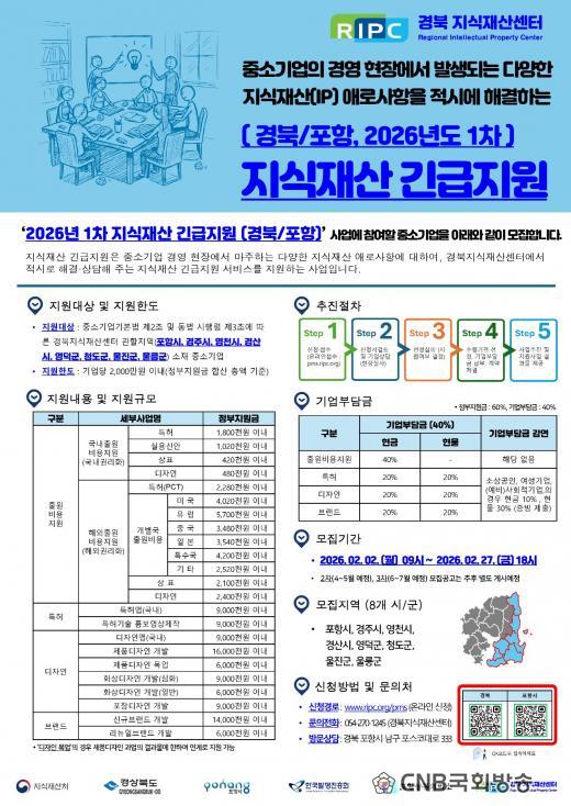 ÇÑÆí, 2026³â Áö½ÄÀç»ê(IP) ±ä±ÞÁö¿ø »ç¾÷¿¡ ´ëÇÑ ÀÚ¼¼ÇÑ »çÇ×Àº ÀüÈ(054-270-1245)¸¦ ÅëÇØ ¹®ÀÇÇÏ¸é µÈ´Ù.