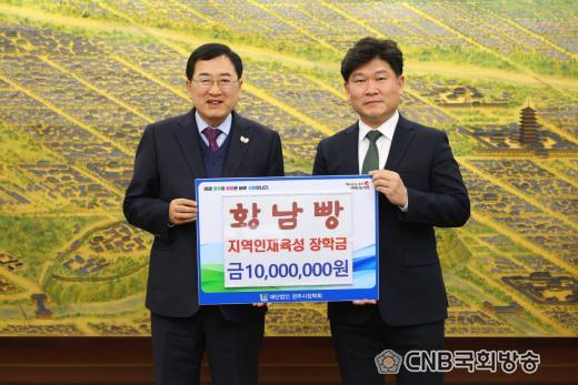 Ȳ³²»§(ÀÌ»ç ÃÖÁøÈ¯)Àº Áö³ 11ÀÏ ¹Ì·¡ °æÁÖ¸¦ À̲ø¾î°¥ ÀÎÀç À°¼º°ú Áö¿ª ±³À° ¹ßÀüÀ» À§ÇØ (Àç)°æÁÖ½ÃÀåÇÐȸ¿¡ ÀåÇÐ±Ý 1,000¸¸ ¿øÀ» ±âŹÇß´Ù.