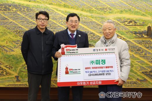 ¢ß¹ÌÁ¤Àº °æÁֽà Çö°î¸é¿¡ ¼ÒÀçÇÑ ±â¾÷À¸·Î, ¸íÀý¸¶´Ù Ãë¾à°èÃþ°ú »çȸº¹Áö½Ã¼³À» À§ÇÑ ³ª´®À» À̾î¿À¸ç Áö¿ª»çȸ¿ÍÀÇ »ó»ýÀ» ½ÇõÇϰí ÀÖ´Ù.