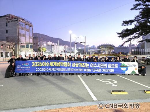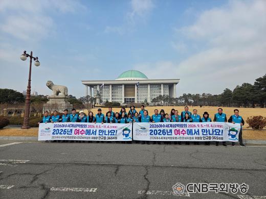 ¶ÇÇÑ, ¸íÀý ±Í¼º°´ÀÌ ¸ô¸®´Â ¿©¼ö¿¢½ºÆ÷¿ª¿¡¼ ½Ã¹Î°ú ¿©¼ö¸¦ ¹æ¹®ÇÏ´Â °ü±¤°´ µî¿¡°Ô ¡®2026¿©¼ö¼¼°è¼¶¹Ú¶÷ȸ ¼º°ø°³ÃÖ´Â ¿©¼ö½Ã¹ÎÀÇ ÈûÀ¸·Î¡¯¶ó´Â ¼±Àü±¸È£ Çö¼ö¸·À¸·Î È«º¸¿¡ ¹ÚÂ÷¸¦ °¡ÇÒ ¿¹Á¤ÀÌ´Ù.