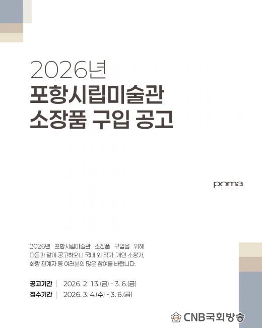 | Æ÷Ç׽ø³¹Ì¼ú°ü, ¹Ì¼ú»çÀû¡¤¿¹¼úÀû °¡Ä¡ ³ôÀº ¼ÒÀåǰ ¼öÁý °ø¸ð - ³»´Þ 6ÀϱîÁö ½Åû Á¢¼ö, »ó¹Ý±â Áß ÃÖÁ¾ ¼±Á¤ ¹× ¸ÅÀÔ °áÁ¤ - ÀÛ°¡¡¤¼ÒÀåÀÚ¡¤°³ÀΡ¤¹ýÀÎ µî ´©±¸³ª ½Åû °¡´É¡¦3¿ù 4ÀϺÎÅÍ 3Àϰ£ µî±â¿ìÆí Á¢¼ö CNB±¹È¸¹æ¼Û Àü±¹ÃѰýº»ºÎÀå ±è°Ç¿ì oprus21@naver.com |