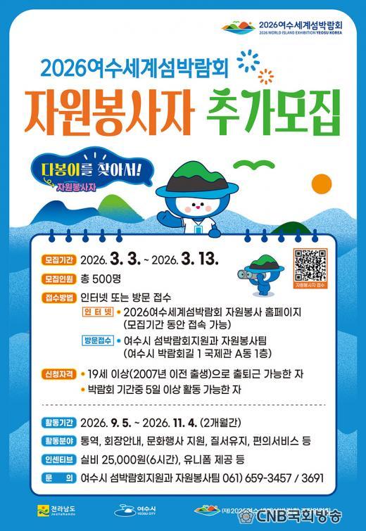 | ¿©¼ö½Ã, 2026¿©¼ö¼¼°è¼¶¹Ú¶÷ȸ ÀÚ¿øºÀ»çÀÚ ¡®´ÙºÀÀÌ¡¯ Ãß°¡ ¸ðÁý -3¿ù 3~13ÀÏ ¿Â¡¤¿ÀÇÁ¶óÀÎ Á¢¼ö¡¦ Ȱµ¿ ±âÁØ ¡®ÃÑ 5ÀÏ ÀÌ»ó¡¯À¸·Î ¿ÏÈ CNB±¹È¸¹æ¼Û È£³²º»ºÎÀå ¿À°æÅ okt0797@naver.com |