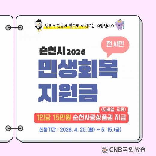 | ¼øÃµ½Ã, ¹Î»ýȸº¹Áö¿ø±Ý Àü ½Ã¹Î 1Àδç 15¸¸ ¿ø Áö±Þ - ½ÅûÀº 4¿ù 20ÀϺÎÅÍ 5¿ù 15ÀϱîÁöÀ̸ç, ¼øÃµ»ç¶û»óǰ±ÇÀ¸·Î Áö±Þ - ¿¬ ¸ÅÃâ¾× 30¾ï ¿ø ÀÌÇÏ ¼Ò»ó°øÀÎ ¾÷ü µî¿¡¼ 9¿ù ¸»±îÁö »ç¿ë°¡´É - Á¤ºÎÁö¿ø±Ý(¼ÒµæÇÏÀ§ 70%)°ú º°µµ·Î Àü ½Ã¹Î¿¡°Ô ºüÁü¾øÀÌ Áö±Þ CNB ±¹È¸¹æ¼Û ¼øÃµ½ÃÃëÀ纻ºÎ ±è±¤¿øº»ºÎÀå cnbnews3000@naver.com |