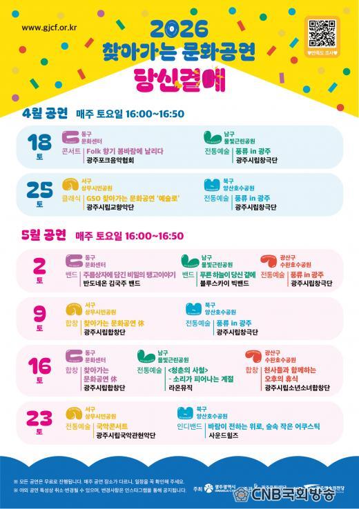 °ø¿¬Àº ¿À´Â 18ÀÏ µ¿±¸¹®È¼¾ÅÍ¿Í ³²±¸ ¹°ºû±Ù¸°°ø¿øÀ» ½ÃÀÛÀ¸·Î 5¿ù°ú 10¿ù, 11¿ù±îÁö ¸ÅÁÖ Åä¿äÀÏ ±Ç¿ªº° ¾ß¿Ü°ø¿¬Àå¿¡¼ ÃÑ 32Â÷·Ê ÁøÇàµÈ´Ù. ½Ã¹Îµé¿¡°Ô´Â ÀÏ»ó ¼Ó ¹®È ÇâÀ¯ ±âȸ¸¦ Á¦°øÇϰí, Áö¿ª ¿¹¼úÀο¡°Ô´Â °ø¿¬ ¹«´ë¸¦ È®´ëÇϱâ À§ÇØ ¸¶·ÃµÆ´Ù.