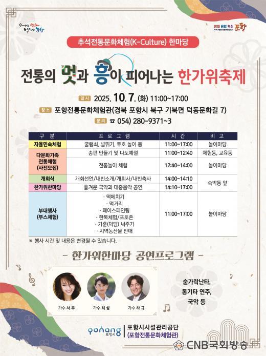 | Æ÷Ç׽ýü³°ü¸®°ø´Ü Æ÷Ç×ÀüÅë¹®ÈüÇè°ü, ÀüÅëÀÇ ¸Ú°ú ÈïÀÌ ¾î¿ì·¯Áö´Ù...¡®Ãß¼®ÀüÅë¹®ÈüÇè ÇѸ¶´ç¡¯ °³ÃÖ  - ¹Î¼Ó³îÀÌ, ´Ù¹®È°¡Á· üÇè, ±¹¾Ç¡¤°¡¿ä °ø¿¬ µî ´Ùä·Î¿î ÇѰ¡À§ ÃàÁ¦  - ¿À´Â 10¿ù 7ÀÏ, Æ÷Ç×ÀüÅë¹®ÈüÇè°ü¿¡¼ ½Ã¹Î¡¤°ü±¤°´ ´©±¸³ª Âü¿© °¡´É CNB±¹È¸¹æ¼Û Àü±¹ÃѰýº»ºÎÀå ±è°Ç¿ì oprus21@naver.com  |