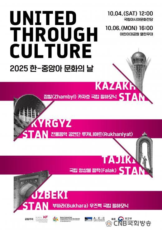 ¿ÃÇØ´Â ½Ã¹ÎµéÀÌ ÀÚÀ¯·Ó°Ô ¹®È»ýȰÀ» ´©¸± ¼ö ÀÖµµ·Ï Ãß¼® ¿¬ÈÞ ±â°£ µ¿¾È Áß¾Ó¾Æ½Ã¾Æ °ø¿¬´ÜÀ» ¹æÇÑ ÃÊÃ»ÇØ Ä«ÀÚÈ彺ź, ۸£±â½º½ºÅº, ŸÁöŰ½ºÅº, ¿ìÁŰ½ºÅºÀÇ ´Ùä·Î¿î 4°³±¹ ¹®È¸¦ °æÇèÇÒ ¼ö ÀÖ´Â °ø¿¬À» ¼±º¸ÀÏ ¿¹Á¤ÀÌ´Ù. 10¿ù 4ÀÏ ¿ÀÈÄ 12½Ã¿¡´Â ±¤ÁÖ ±¹¸³¾Æ½Ã¾Æ¹®ÈÀü´ç ¿¹¼ú±ØÀå ºòµµ¾î¿¡¼ 2025 ACC ¾Æ½Ã¾Æ¹®ÈÁÖ°£ÀÇ ÀÏȯÀ¸·Î ù °ø¿¬À» ¼±º¸À̸ç, Ãß¼® ´çÀÏÀÎ 10¿ù 6ÀÏ ¿ÀÈÄ 4½Ã¿¡´Â ¼¿ï ¾î¸°ÀÌ´ë°ø¿ø ¿¸°¹«´ë¿¡¼ µ¿ÀÏÇÑ Áß¾Ó¾Æ½Ã¾Æ ¹®È°ø¿¬À» °ü¶÷ÇÒ ¼ö ÀÖ´Ù.