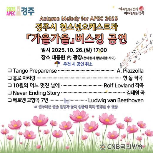 | °æÁֽà û¼Ò³â¿ÀÄɽºÆ®¶ó, ´ë¸ª¿ø¼ °¡À» ¹ö½ºÅ· °ø¿¬ °³ÃÖ - ¡®Autumn Melody for APEC 2025¡¯¡¦°¡À»¹ã, À½¾ÇÀ¸·Î ¹°µéÀÌ´Ù CNB±¹È¸¹æ¼Û Àü±¹ÃѰýº»ºÎÀå ±è°Ç¿ì oprus21@naver.com |