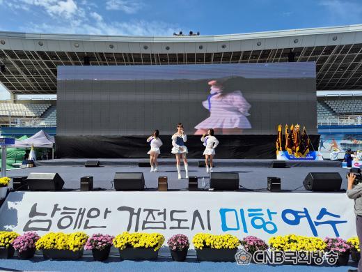 À̳¯ Çà»ç´Â ¿©¼ö Áø³²°æ±âÀå¿¡¼ ½Ã¹Î 5,000¿© ¸íÀÌ Âü¼®ÇÑ °¡¿îµ¥ ¿·ÈÀ¸¸ç, ±è´ÙÇöÀº ÃÊ´ë°¡¼ö·Î ¹«´ë¿¡ ¿Ã¶ó ÈûÂù ÃàÇϰø¿¬À» ÆîÄ£ µÚ Á÷Á¢ ±âºÎ±ÝÀ» Àü´ÞÇß´Ù.