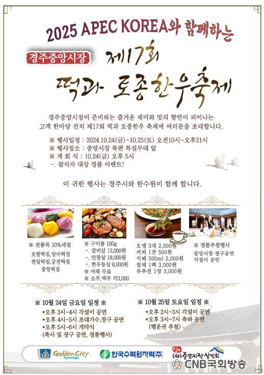À̹ø Çà»ç´Â ¡®2025 APEC KOREA¿Í ÇÔ²²ÇÏ´Â °æÁÖ Áß¾Ó½ÃÀå ÃàÁ¦¡¯·Î, »óÀεéÀÇ Á¤¼º°ú ¿Á¤À» ´ã¾Æ 17³â° À̾îÁö°í ÀÖ´Ù.
