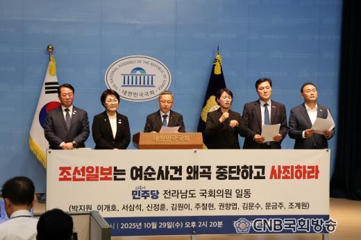 Àü³² Áö¿ª ¹ÎÁÖ´ç ÀÇ¿øµéÀº 29ÀÏ ±¹È¸ ¼ÒÅë°ü¿¡¼ ±âÀÚȸ°ßÀ» ¿°í ¡°Á¶¼±ÀϺ¸°¡ ¿©¼ø»ç°Ç 77Áֱ⸦ ¸Â¾Æ ´ëÅë·ÉÀÇ Ã߸ð ¸Þ½ÃÁö¸¦ ¿Ö°îÇϰí, Èñ»ýÀÚ¿Í À¯Á·ÀÇ ¸í¿¹¸¦ Áþ¹â¾Ò´Ù¡±°í ºñÆÇÇß´Ù.